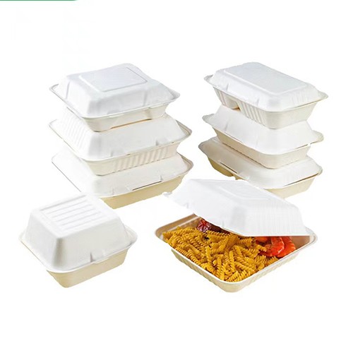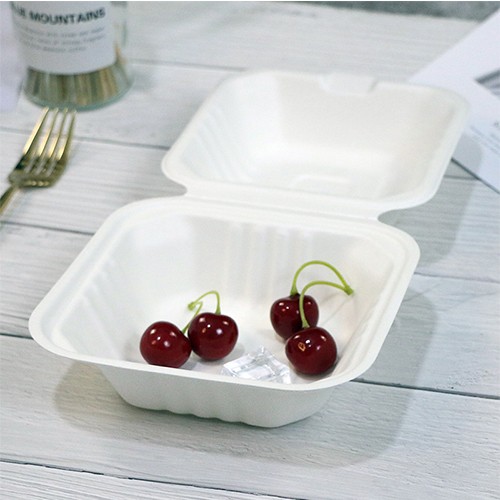 100% COMPOSTABLE SUGARCANE BAGASSE 6 INCH BURGER BOX