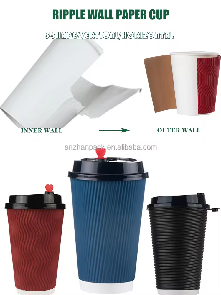 RIPPLE WALL PAPER CUPS WITH LIDS