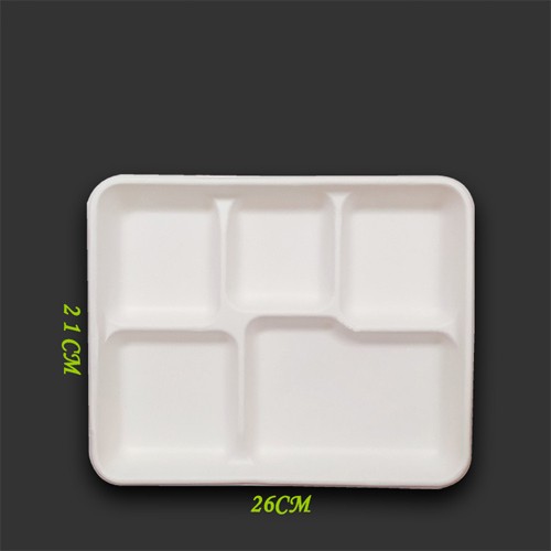 100% COMPOSTABLE SUGARCANE LUNCH TRAY 5 COMPARTMENT