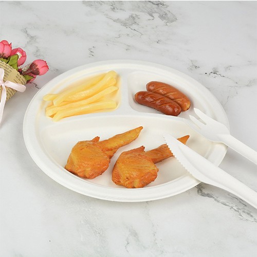 100% COMPOSTABLE SUGARCANE BAGASSE ROUND PLATE 7 INCH